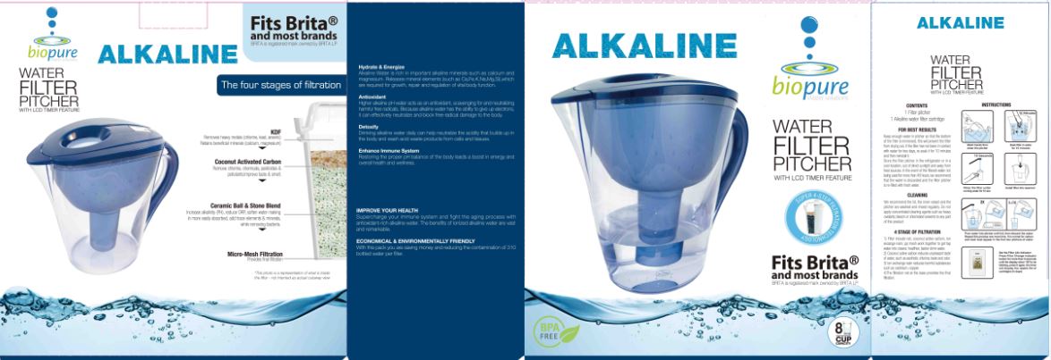 Jarra con sistema de filtrado e indicador LED de cambio de filtro, produce agua ALCALINA de 8.5 a 9 PH