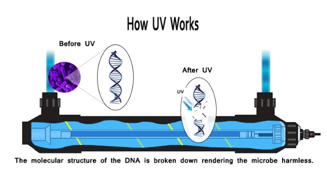 LA LUZ ULTRAVIOLETA (UV), UNA PARTE NATURAL DE LA LUZ SOLAR, ES AMPLIAMENTE ACEPTADA COMO UNA SOLUCIÓN CONFIABLE, EFICIENTE Y ECOLÓGICA PARA LA DESINFECCIÓN DEL AGUA. ESTA LÁMPARA UV UTILIZA LA APLICACIÓN DE UN RADIADOR UV PARTICULARMENTE EFICIENTE CON UNA LONGITUD DE ONDA DE 254 NM PARA CAUSAR LA MUERTE INMEDIATA DE LOS ORGANISMOS Y ELIMINAR SU CAPACIDAD PARA SOBREVIVIR Y REPRODUCIRSE. 99.99% DE DESTRUCCIÓN DE BACTERIAS Y VIRUS. "